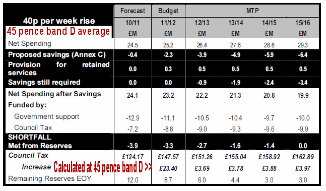 The dishonourable 40 pence - 45 for Band D council tax payers still has unidentified savings needing to be made.